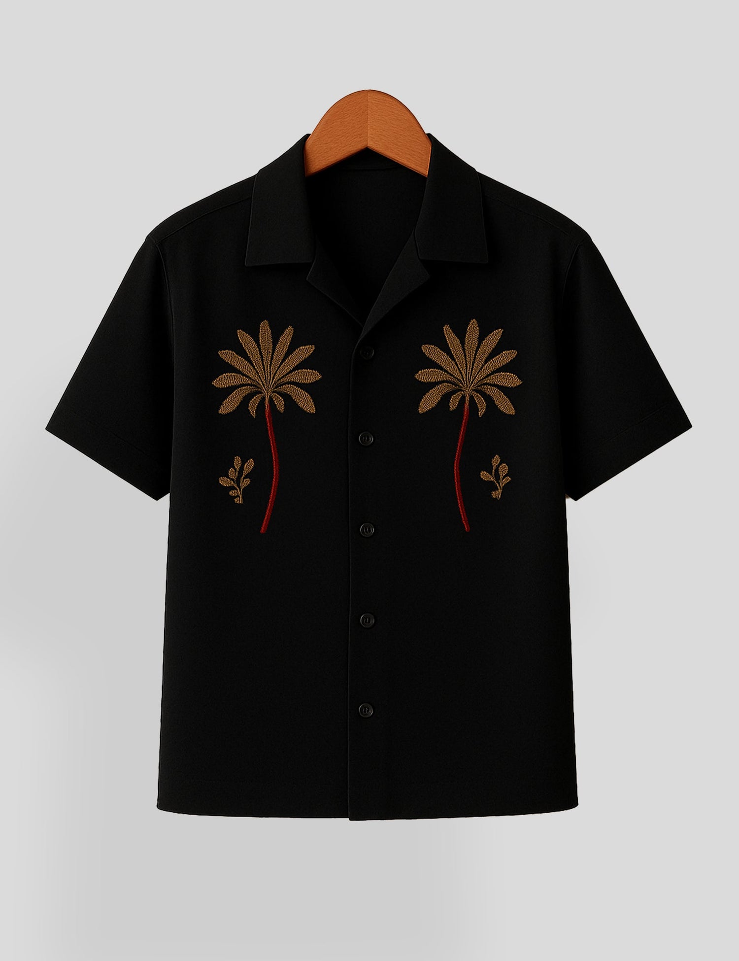 Black Coconut Tree Printed Mens Premium Cotton Half Sleeve Shirt - XPST