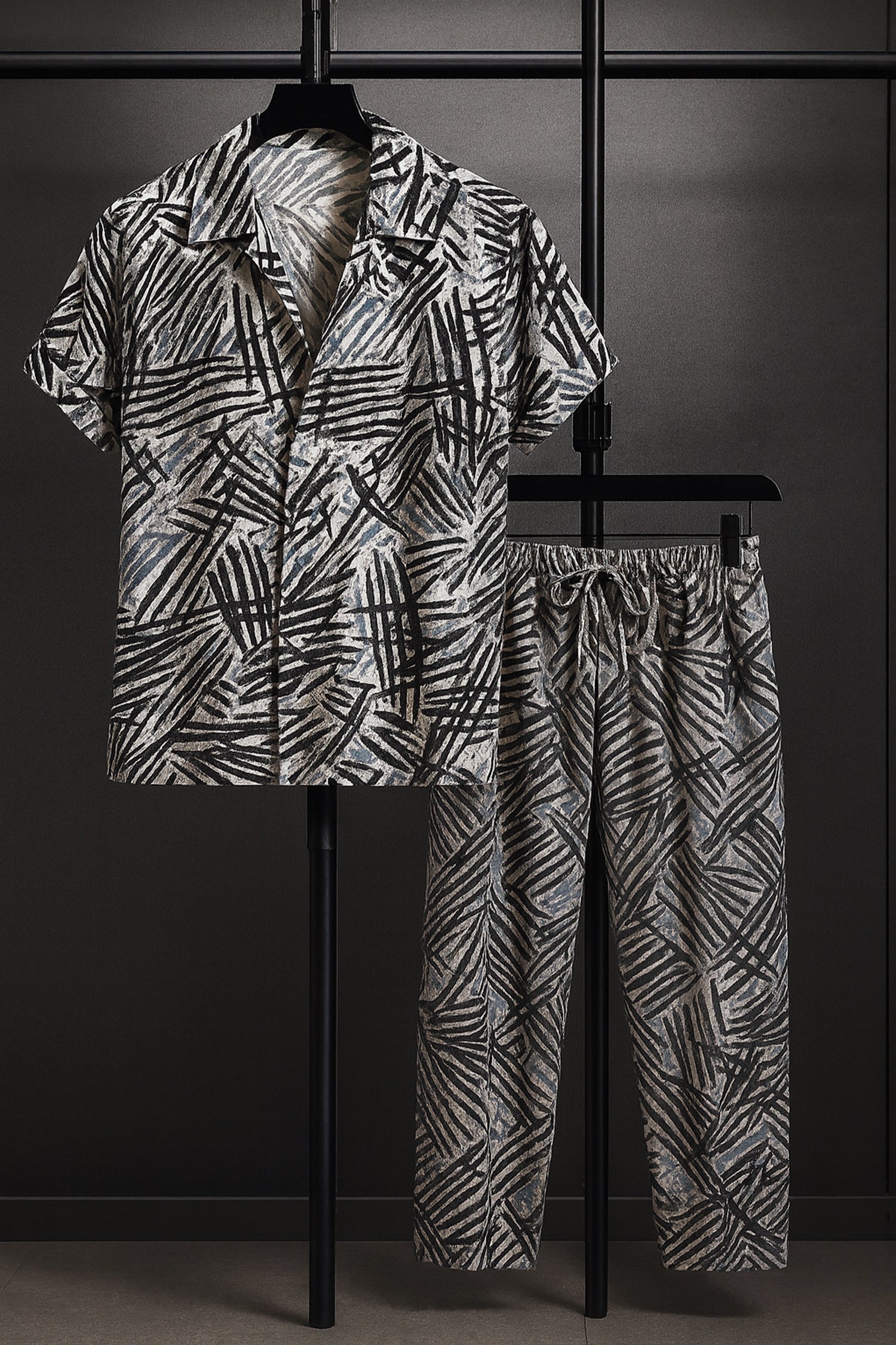 Black Scratch Men's Casual Half Sleeve Shirt and Trouser Co-ord Set