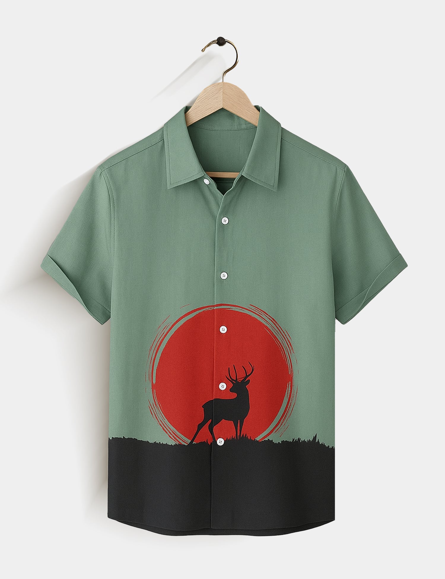 Deer Moon Printed Essential Everyday Cotton Shirt for Men - XPST