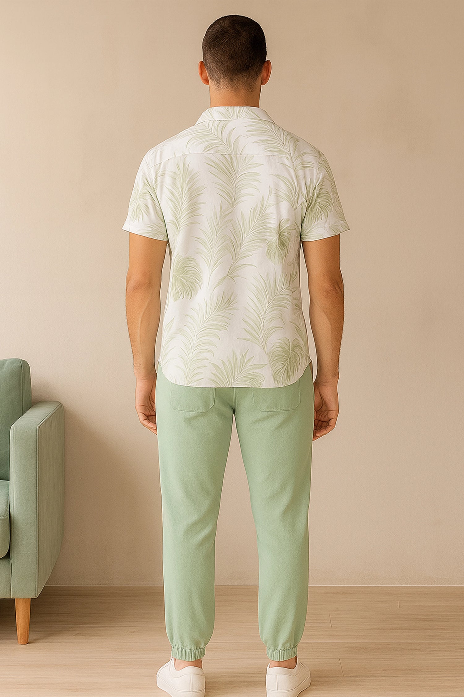 Leafy White Men's Casual Half Sleeve Shirt and Trouser Co-ord Set