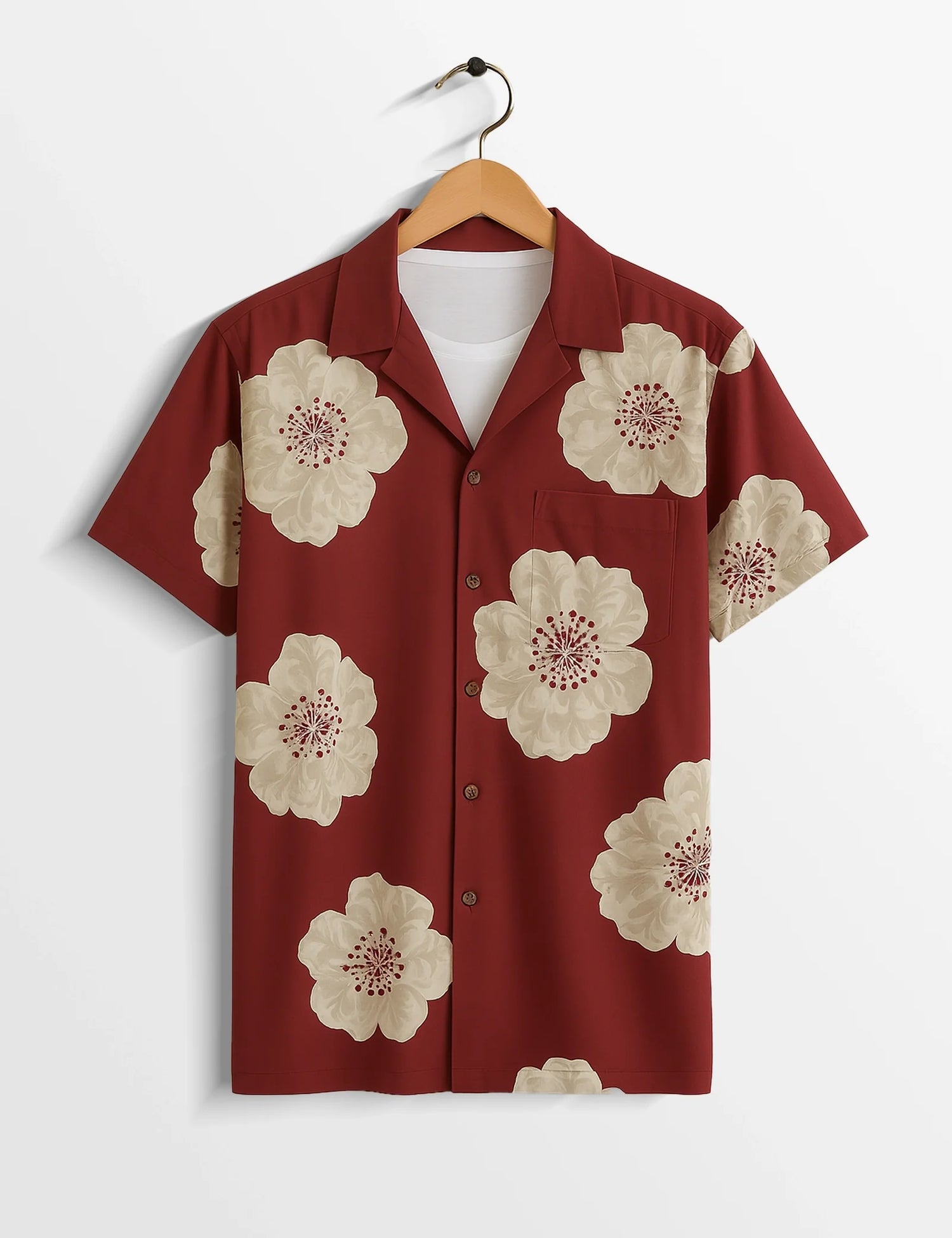 Red Flower SleekFit Cotton Casual Shirt for Men