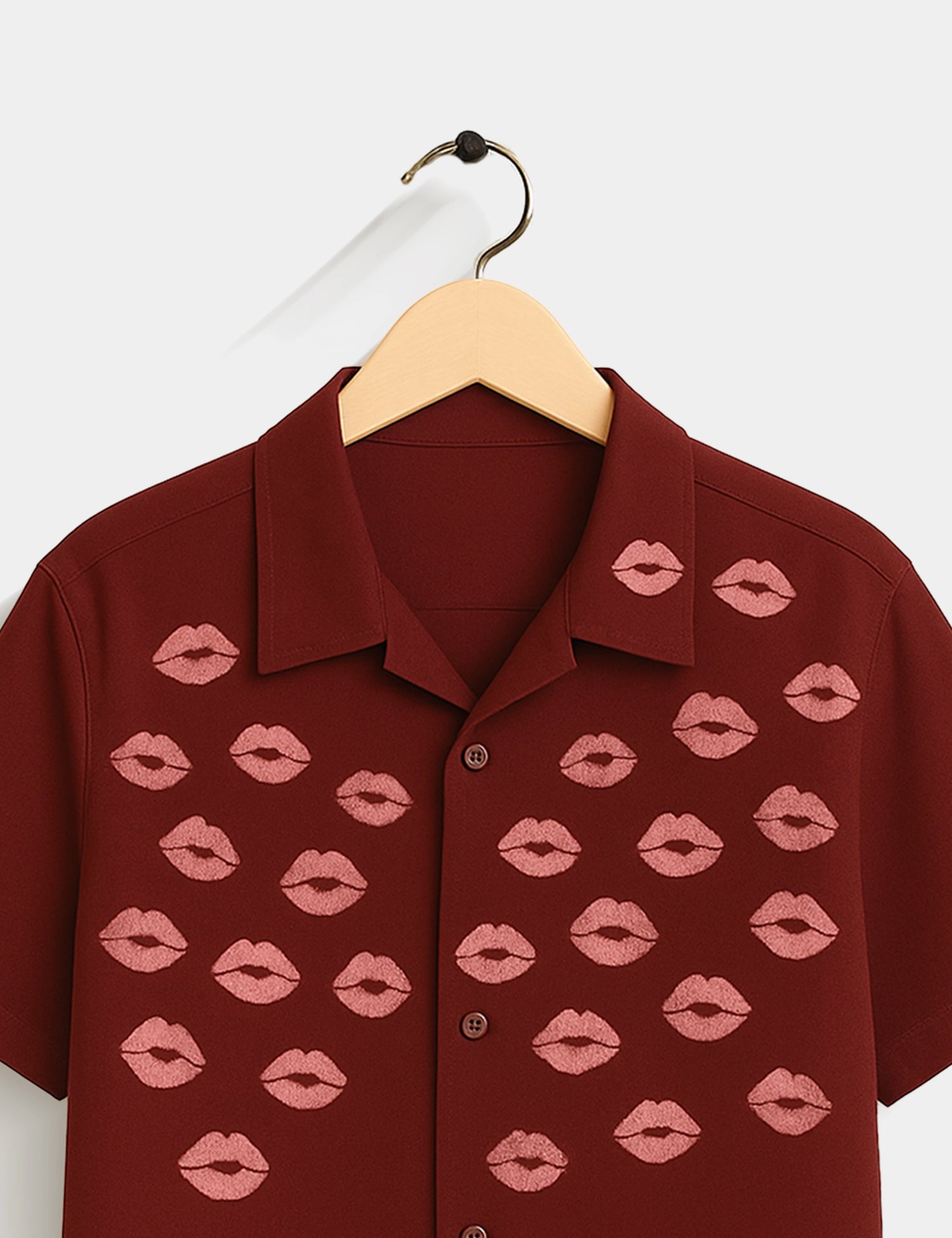 Red Lipstick Printed Essential Everyday Cotton Shirt for Men - XPST