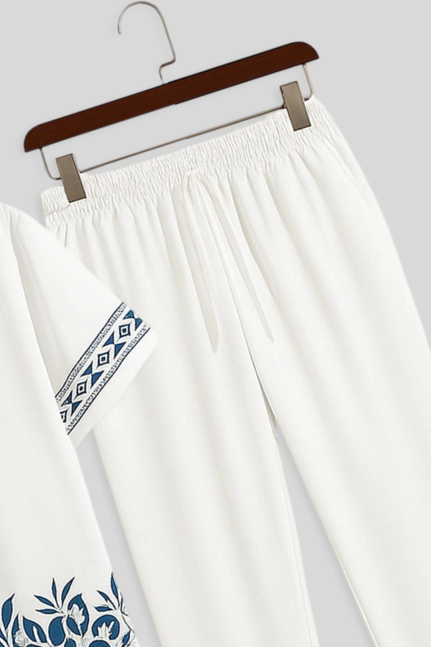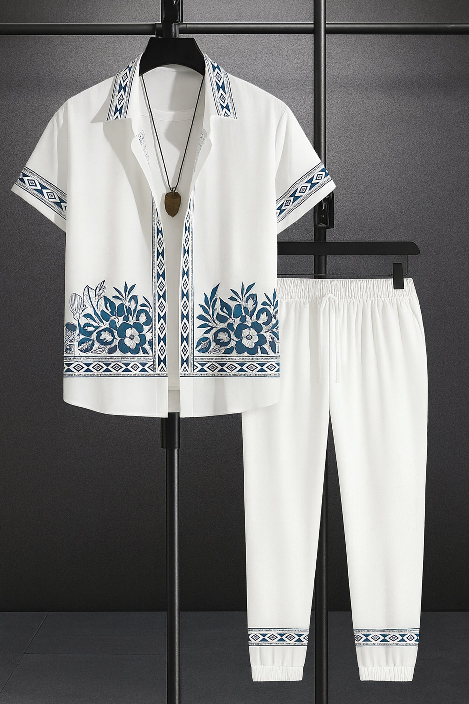 White Border Men's Casual Half Sleeve Shirt and Trouser Co-ord Set